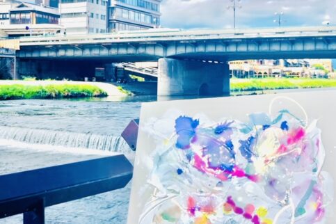 京都 鴨川沿いでアート制作